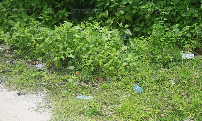 Растения и пустые бутылки на земле в тропической стране