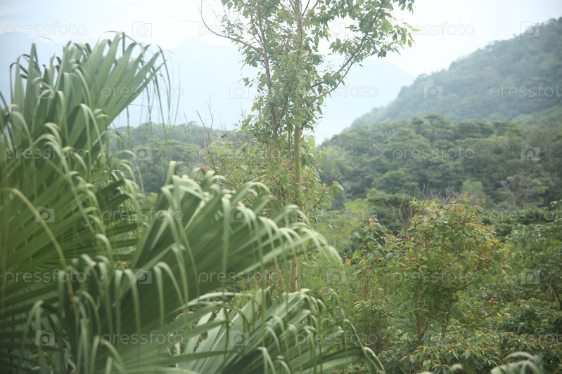 Зеленые пальмы и другие растения в тропической стране