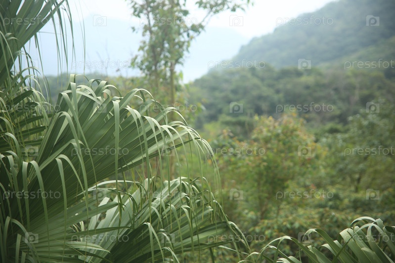 Зеленые пальмы и другие растения в тропической стране