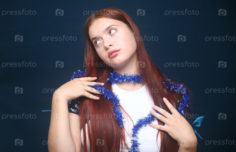 Красивая девушка позирует с новогодним блеском