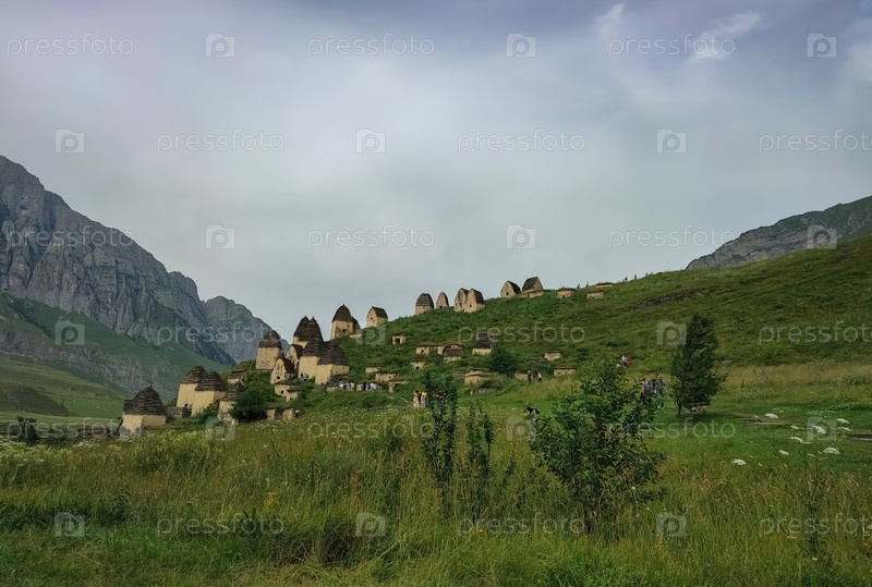 Древние склепы в горной долине, Даргавы, Северная Осетия