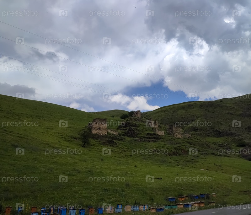 Зеленые холмы под облачным небом