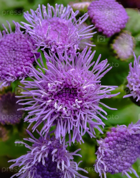 Ближайший снимок цветка - это агерат Гаустона (Ageratum houstonianum), также известный как мексиканский агерат или длинноцветковый