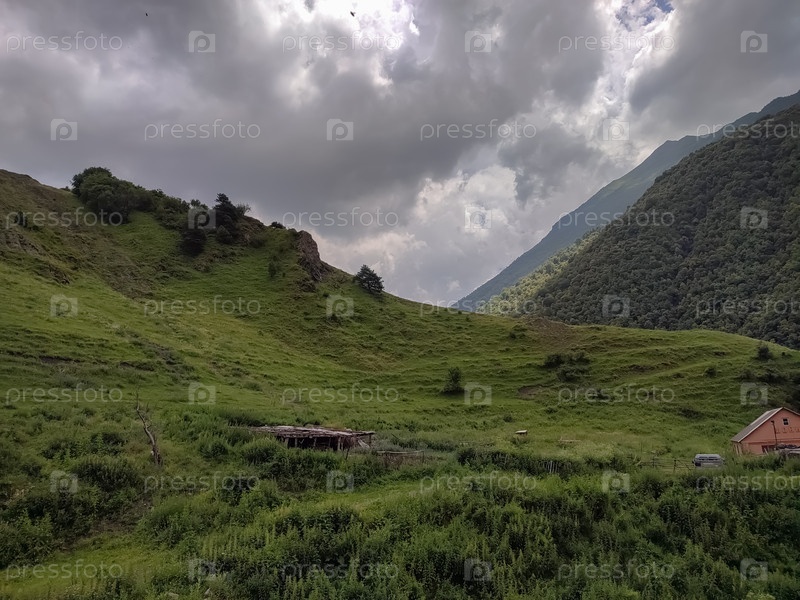 Зеленые холмы под облачным небом