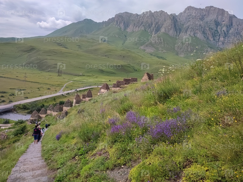 Древние склепы в зеленой долине Кавказа