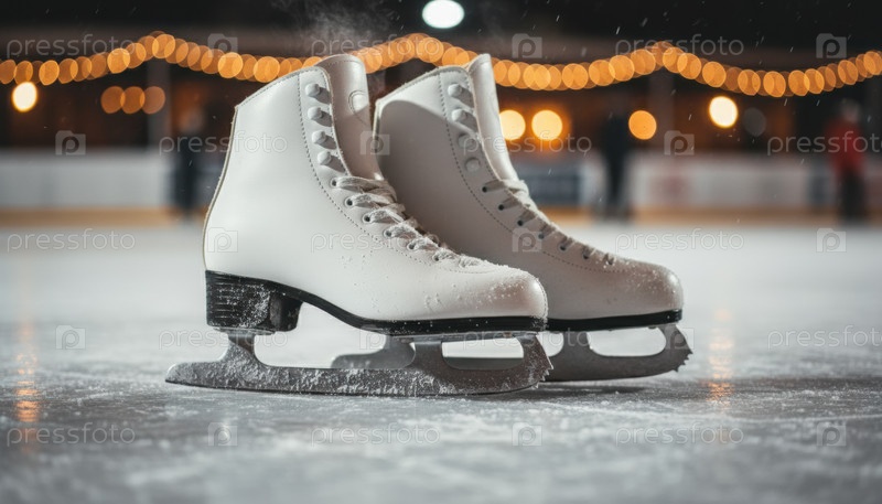 Пара коньков на катках, символизирующих зимние спортивные праздники и тенденции активности во время праздничного сезона