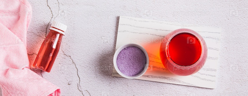 Быстрая смесь гидратации в стекле и миске на веб-баннере с видом на стол сверху