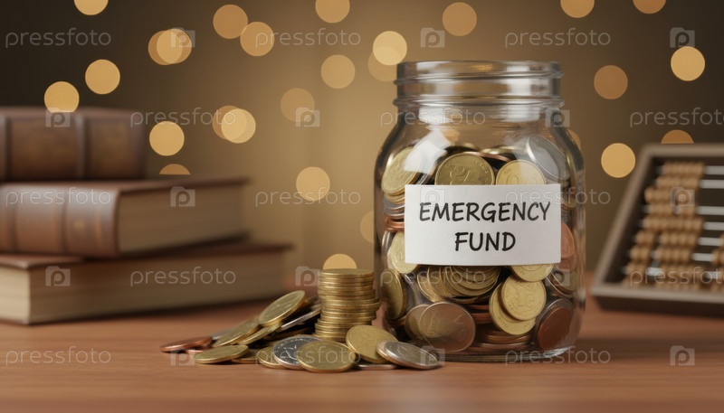 Банк аварийного фонда, заполненный монетами, представляет финансовое планирование, дисциплину сбережений и осведомленность о долгосрочной безопасности