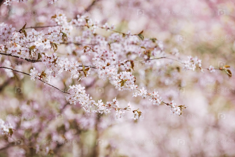 Цветы на ветвях деревьев в японском парке. Розовая вишня в цветении. Весна здесь и природа оживает. Японские вишневые цветы в весеннем саду