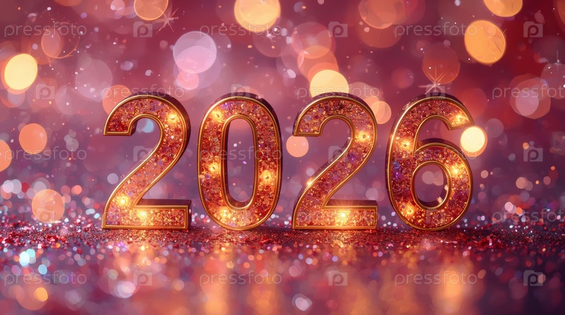Фигуры 2026 на красном фоне с боке