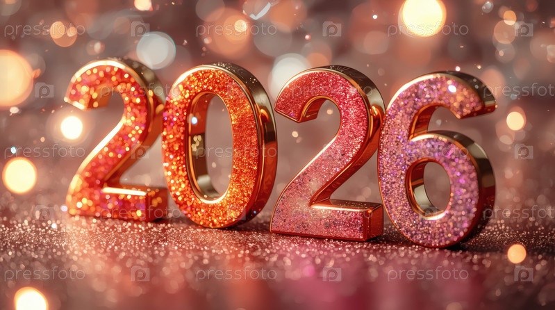 Фигуры 2026 на красном фоне с боке