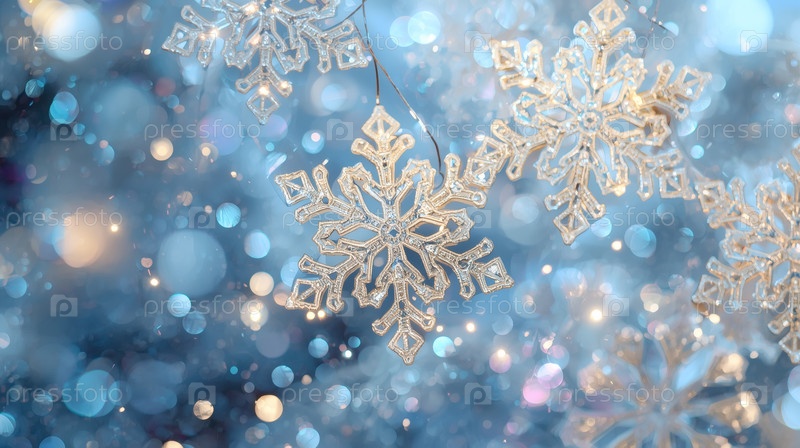 Золотые снежинки на синем блестящем фоне