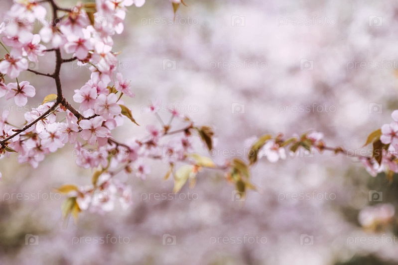 Цветы на ветвях деревьев в японском парке. Розовая сакура цветет. Весна здесь, и природа оживает. Японская сакура цветёт в весеннем саду