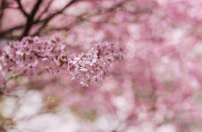 Цветы на ветвях деревьев в японском парке. Розовая вишня в цветении. Весна здесь и природа оживает. Японские вишневые цветы в весеннем саду