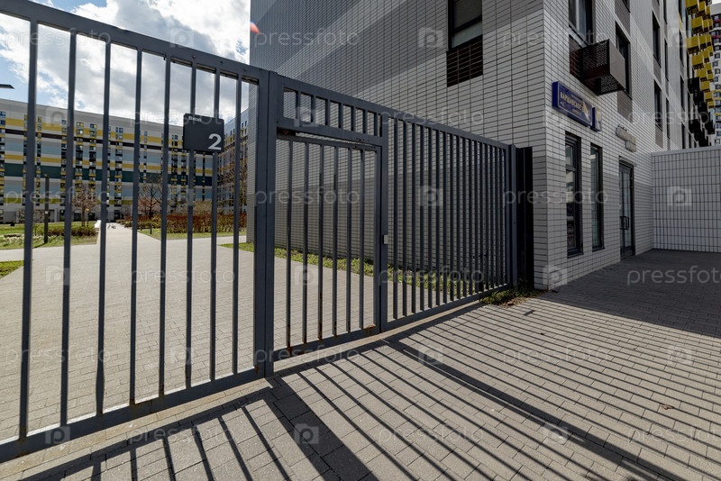 Забор и ворота, закрывающие двор на современном ЖК-дисплее