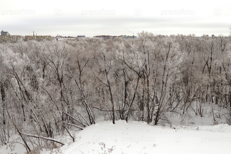 Зимний вид с Ленинградского моста на остров и город Омск