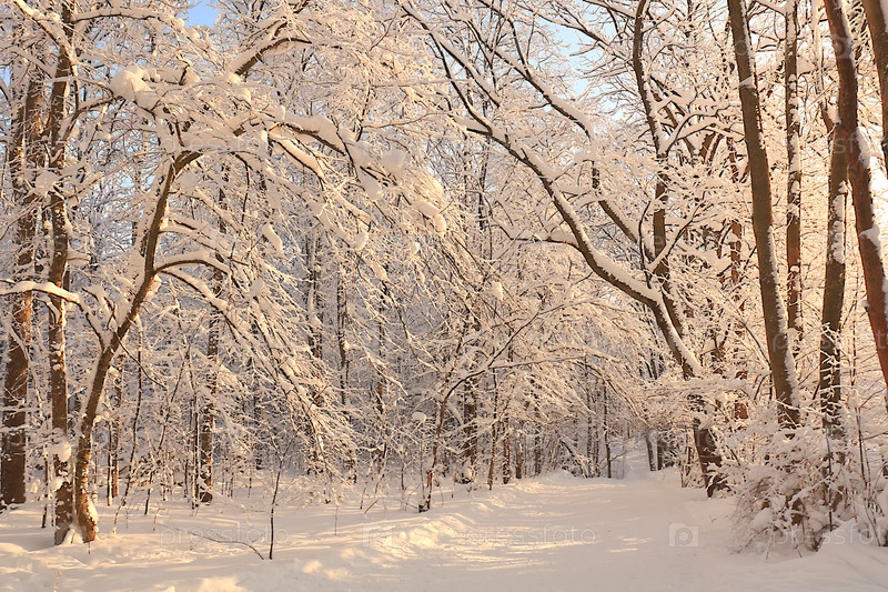 После снегопада ветви деревьев покрываются снегом и блестят на солнце, при сильных морозах и низких температурах