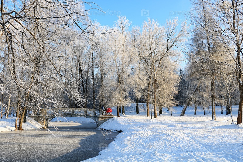 После снегопада ветви деревьев покрыты снегом и блестят на солнце, сильные морозы и низкие температуры