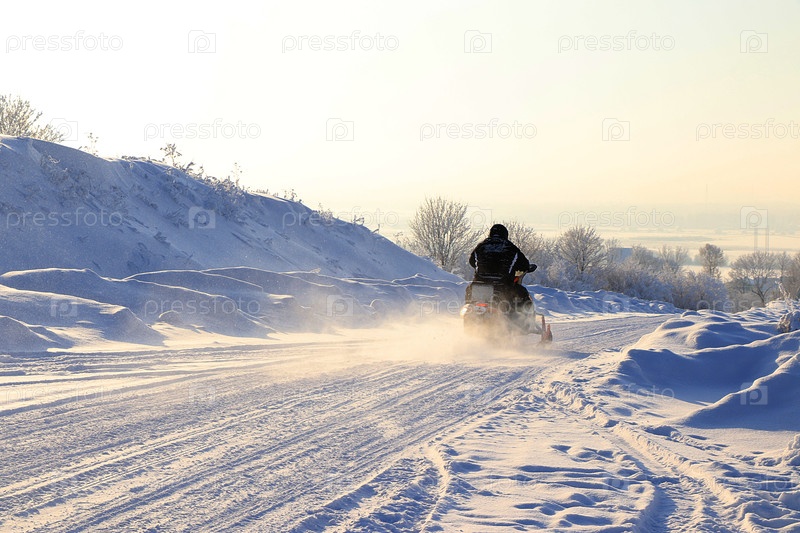 Зимние виды спорта в России.На фото спортсмены на снегоходах катаются по заснеженной бездорожью, в диком непроходимом районе.Окруженный красивым зимним фоном со снегом покрытыми деревьями