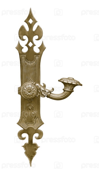 Готическая золотая дверная ручка, изолированная на белом фоне