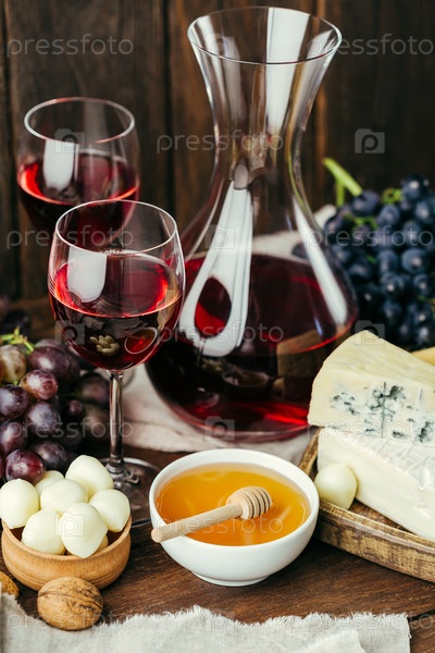 Красное вино, виноград и сыр