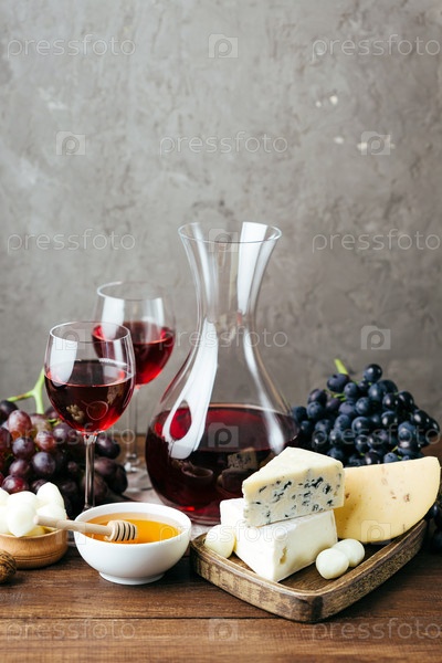 Красное вино, виноград и сыр