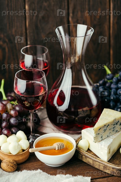 Красное вино, виноград и сыр