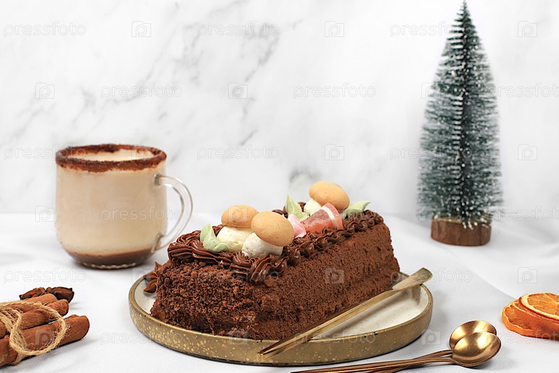 Баннер праздничной кухни. Концепция праздничного выпекания, сезонных лакомств и рекламные кафе, меню ресторанов. Домашний зимний десерт, тален, рулоны или штрудель со сладким сливочным наполнением, орехи, корица, клюквы и маковые семена, а также яйцо