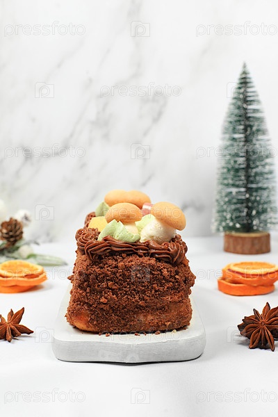 Домашний зимний десерт, стален или штрудель со сладким сливочным наполнением, орехами, корицей и маковыми семенами. Концепция праздничной выпечки, сезонные угощения и рекламные кафе, меню ресторанов. Holiday Kitchen Pilot