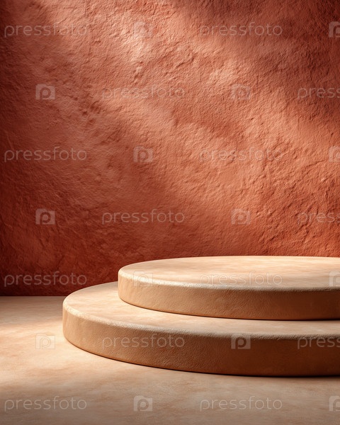 Минимальный терракотовый подиум с текстурированным фоном и теплым освещением