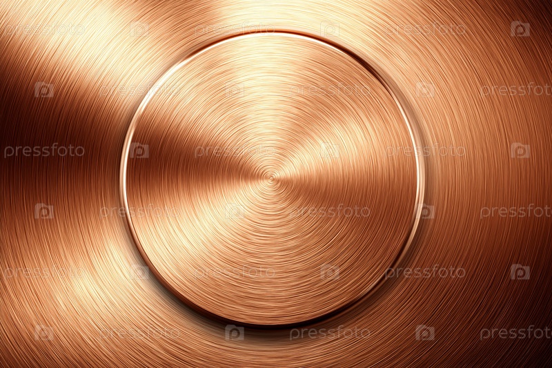 Резанная медная кнопка на металлическом фоне