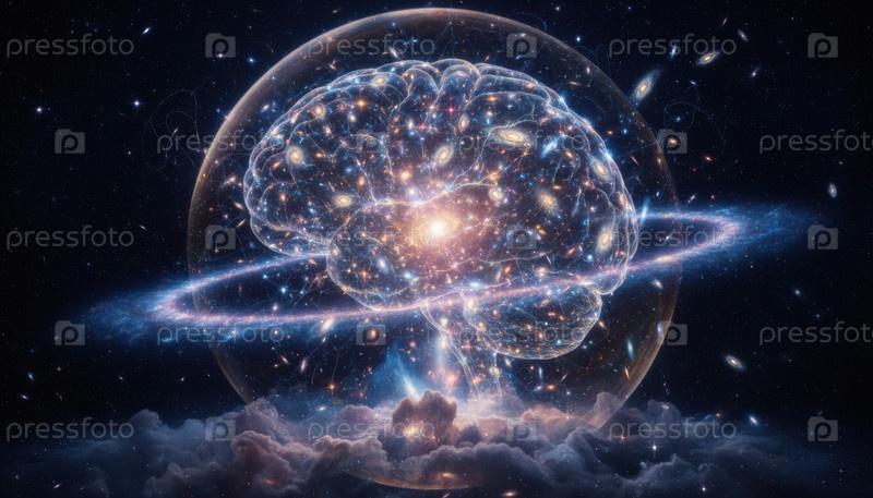 Космический мозг, состоящий из галактик, символизирует творчество, инновации, будущие технологии, исследование Вселенной и концепцию искусственного интеллекта