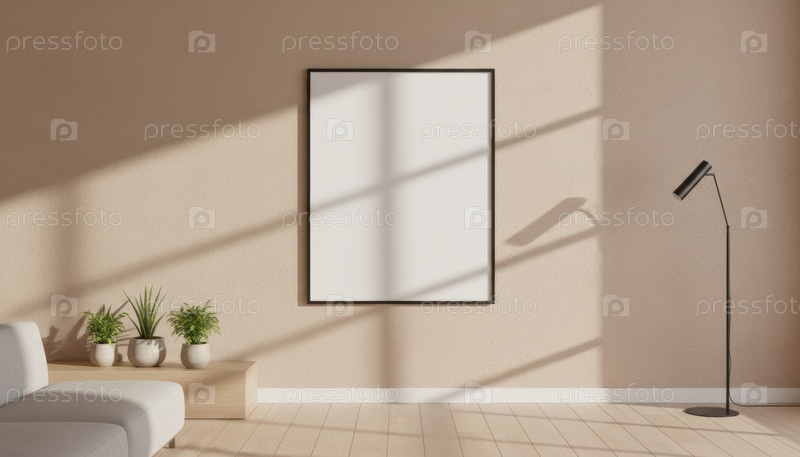 Минималистский интерьер с пустой рамой, символизирующей творчество, дизайнерские макеты, тенденции домашнего декора и настраиваемое художественное выражение