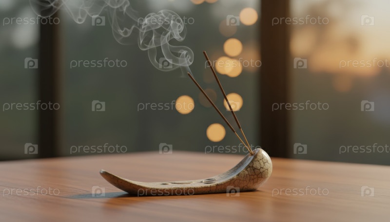 Горящие палочки с фимиамом, выпускающие дым в спокойной обстановке в комнате передают ритуальную практику успокаивающей медитации и сознательную атмосферу расслабления