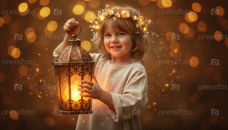 Ребенок держит светящийся фонарь, символизирующий праздничное чудо и тепло во время зимних каникул