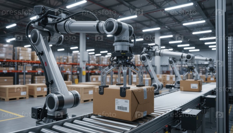 Роботизированный ручной перемещающийся пакет на конвейере демонстрирует тенденцию автоматизации в современном американском складе