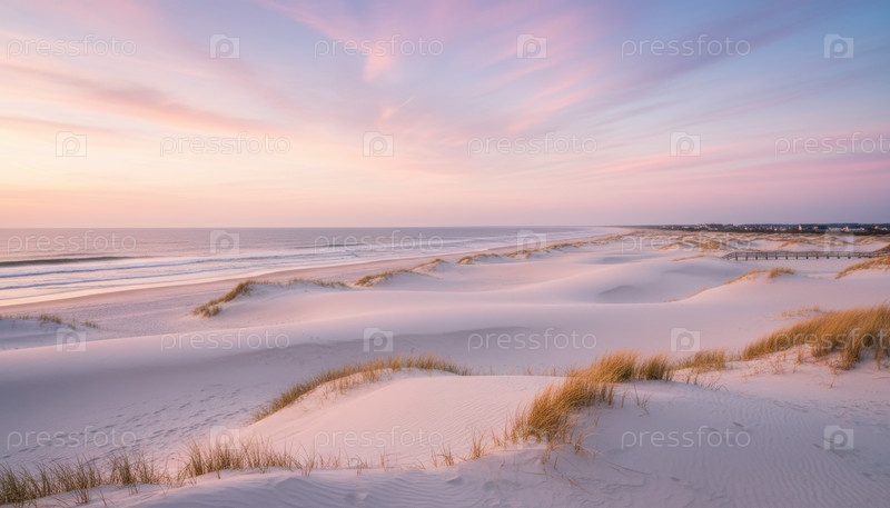Мягкий ландшафт пастельных дюн вызывает концепцию спокойного прибрежного отдыха, намекая на глобальную тенденцию пляжных направлений, привлекающих осознанное путешествие
