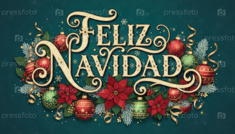 Feliz Navidad с орнаментами, олицетворяющими веселое празднование Рождества и декоративную сезонную радость