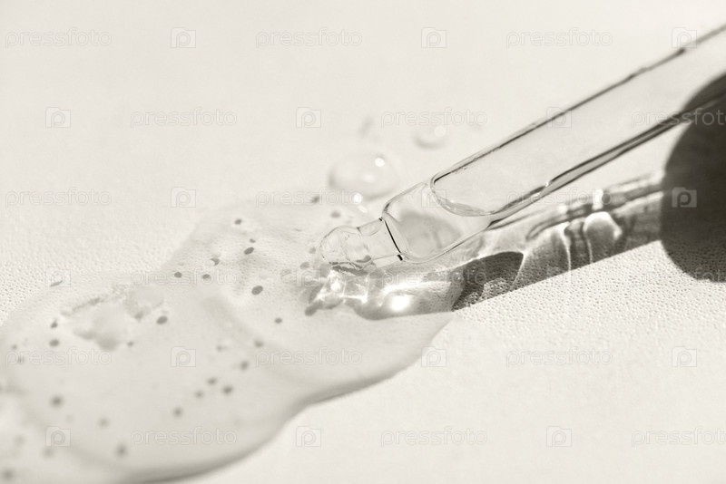 Закройте прозрачное сывороточное или масляное стекло на бутылке на светлом фоне