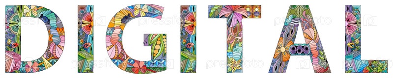 Цифровые слова вручную рисуют современный векторный иллюстрационный дизайн