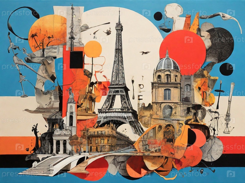 Абстрактный коллаж парижских достопримечательностей