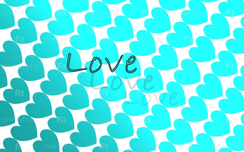 Иллюстрация голубых сердец со словами любовь на белом фоне