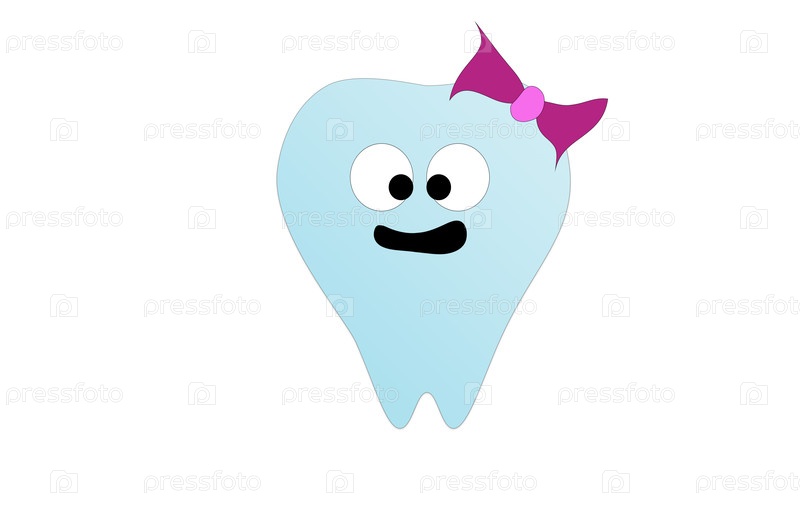 Иллюстрация с анимированным зубом и луком на белом фоне