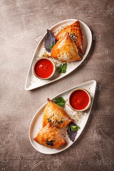 Самоза, самса мясо наполненное пирогами. узбекское национальное блюдо самос. концепция кухни Центральной Азии, Южной и Восточной Азии