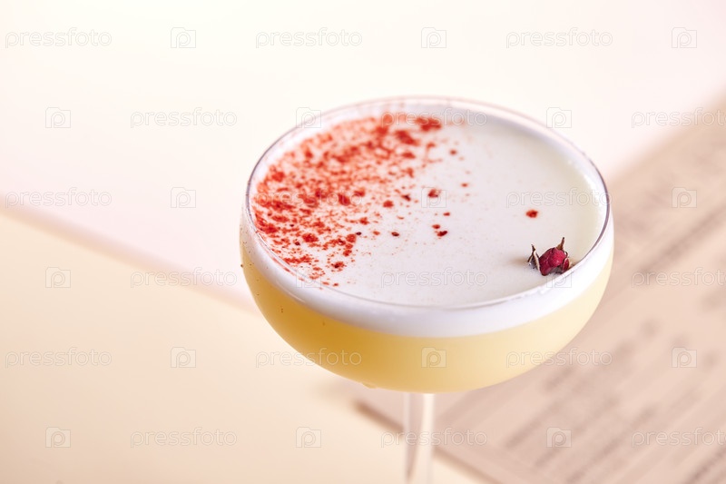 Холодный алкогольный или безалкогольный коктейль с пеной на пастельном фоне