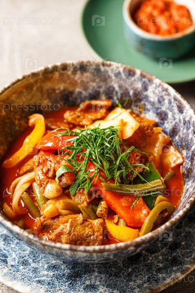 Традиционный азиатский суп с овцами и овощами.Концепция кухни Центральной и Восточной Азии