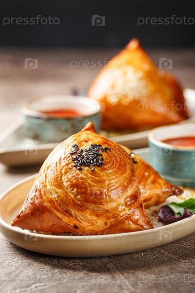 Самса, мясные пироги. Узбекское национальное блюдо самосов. Концепция кухни Центральной, Южной и Восточной Азии