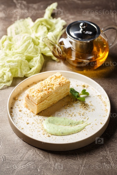 Кусок торта 'Наполеон' - это слойное тесто с кремом. русская кухня, многослойный торт с кремом