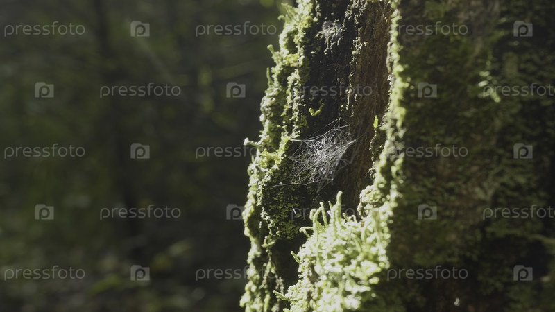Большая паутина.Паутина на близком расстоянии.Большая паутина с ветвью, светящейся под солнцем
