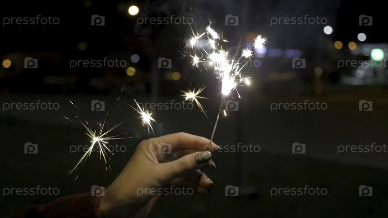 Близкий план женщины с бенгальскими огнями на улице. Близкий план девушки с бенгальскими огнями. Женская рука с бенгальскими огнями на улице. Праздничные темы